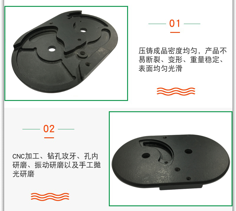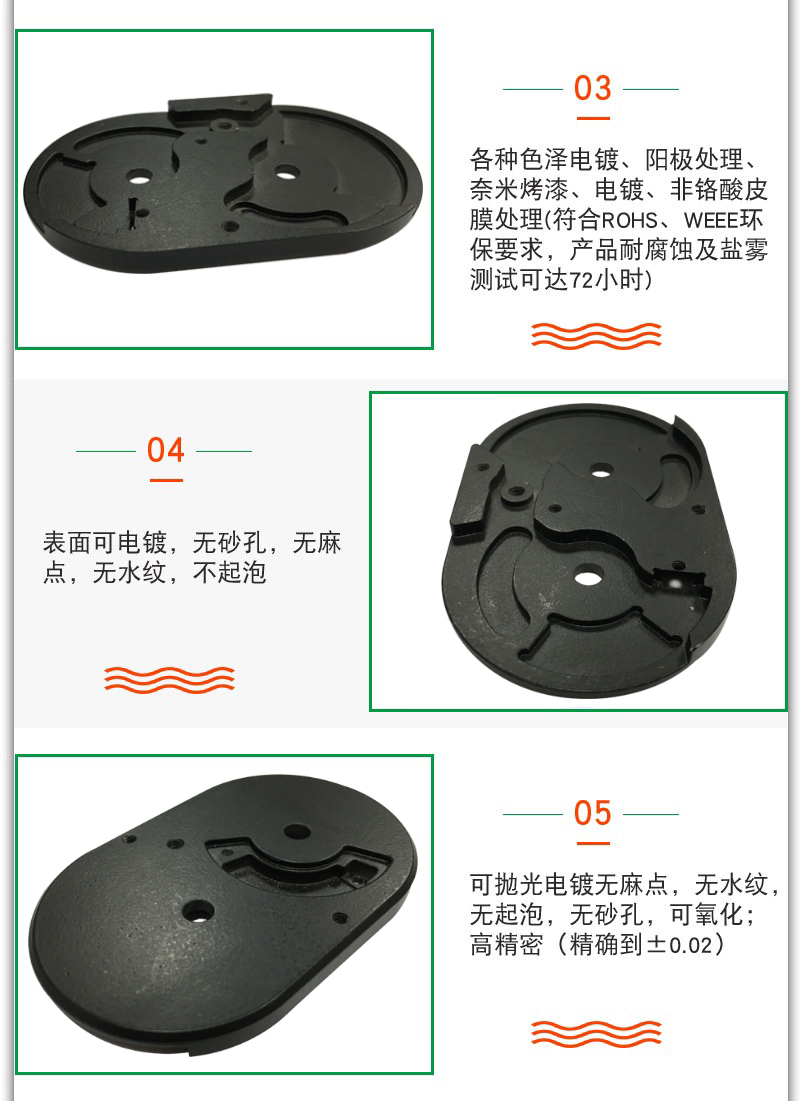 - 壓鑄件可保證無水紋,不起泡,不滲水,不漏氣