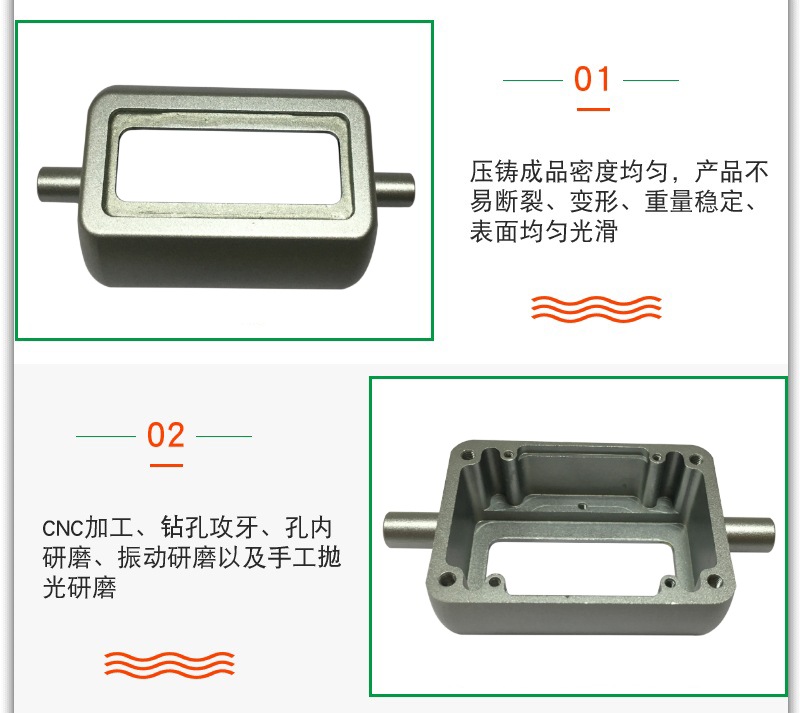 - 壓鑄件可保證無水紋,不起泡,不滲水,不漏氣