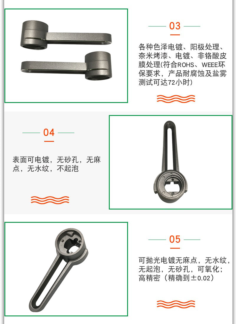 - 壓鑄件可保證無水紋,不起泡,不滲水,不漏氣