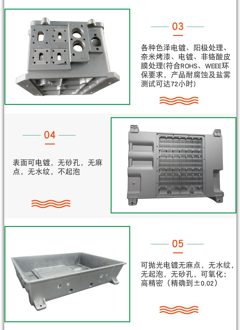 - 壓鑄件可保證無水紋,不起泡,不滲水,不漏氣