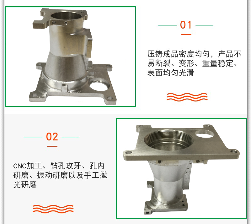 壓鑄成品密度均勻,產品不易斷裂、變形、質量穩定